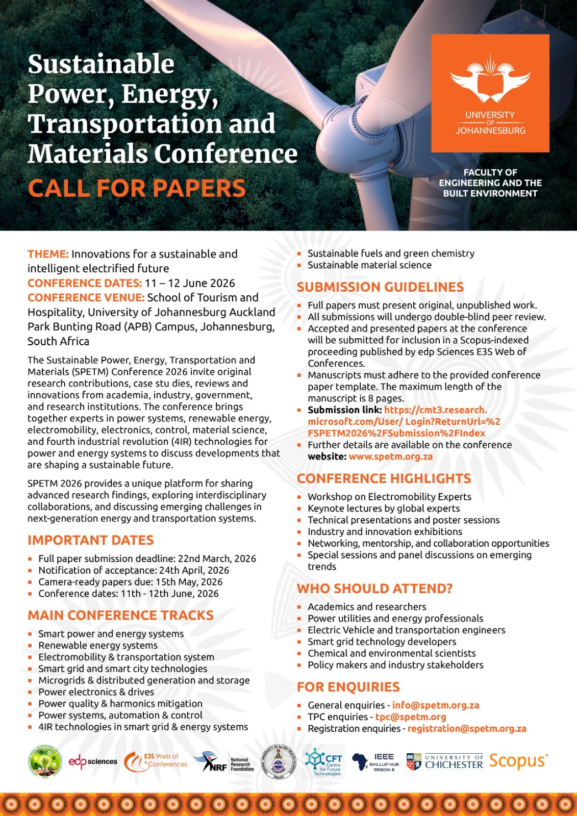 The global transition toward low-carbon and sustainable technologies is rapidly reshaping the transport and energy sectors. In response to these developments, the Sustainable Power, Energy, Transportation, and Materials (SPETM) Conference 2026 provides a dedicated forum for advancing research, innovation, and collaboration in these critical domains.